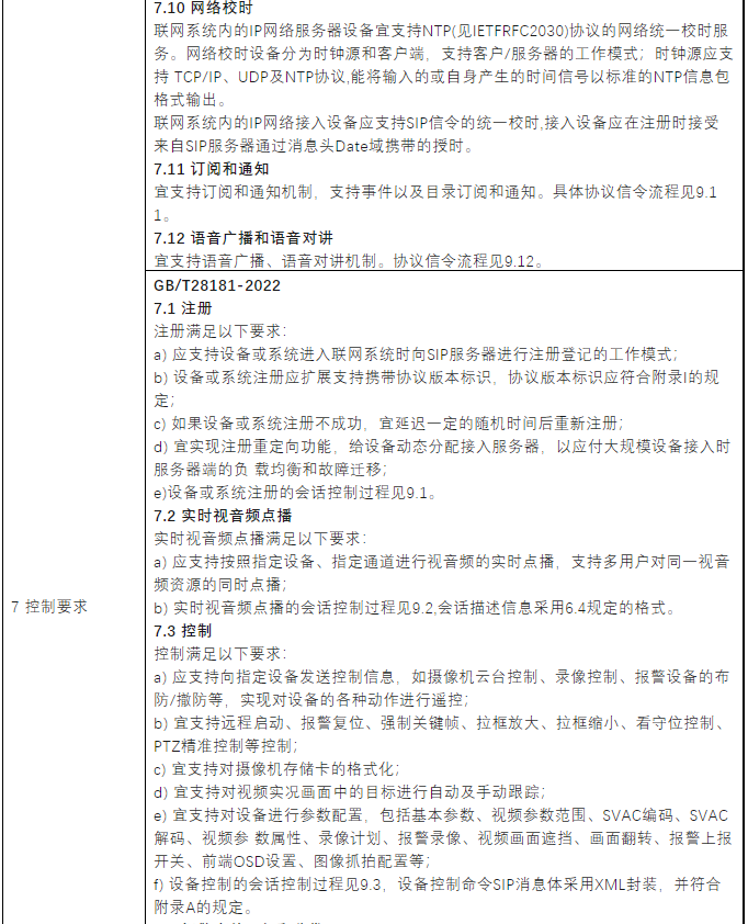 国家标准GB/T28181-2022《公共安全视频监控联网系统信息传输、交换、控制技术要求》规定了公共安全视频监控联网系统(以下简称“联网系统”)的互联结构,传输、交换、控制的基本要求和安全性要求,以及控制、传输流程和协议接口等技术要求。适用于公共安全视频监控联网系统的方案设计、系统检测、验收以及与之相关的设备研发、生产。其他视频监控联网系统可参照执行。